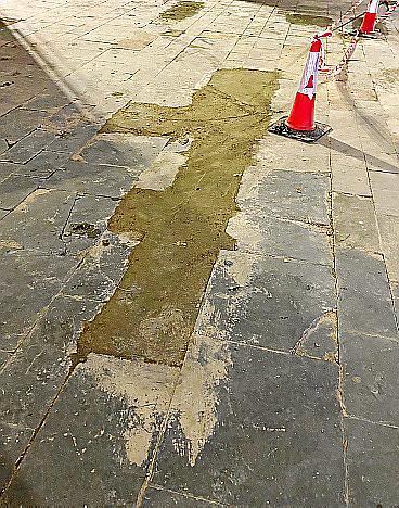 Residents of Palma's Plaça Espanya are once more expressing their dissatisfaction with the square's maintenance. Broken paving tiles and their temporary repair with cement are the focus for the latest complaints.