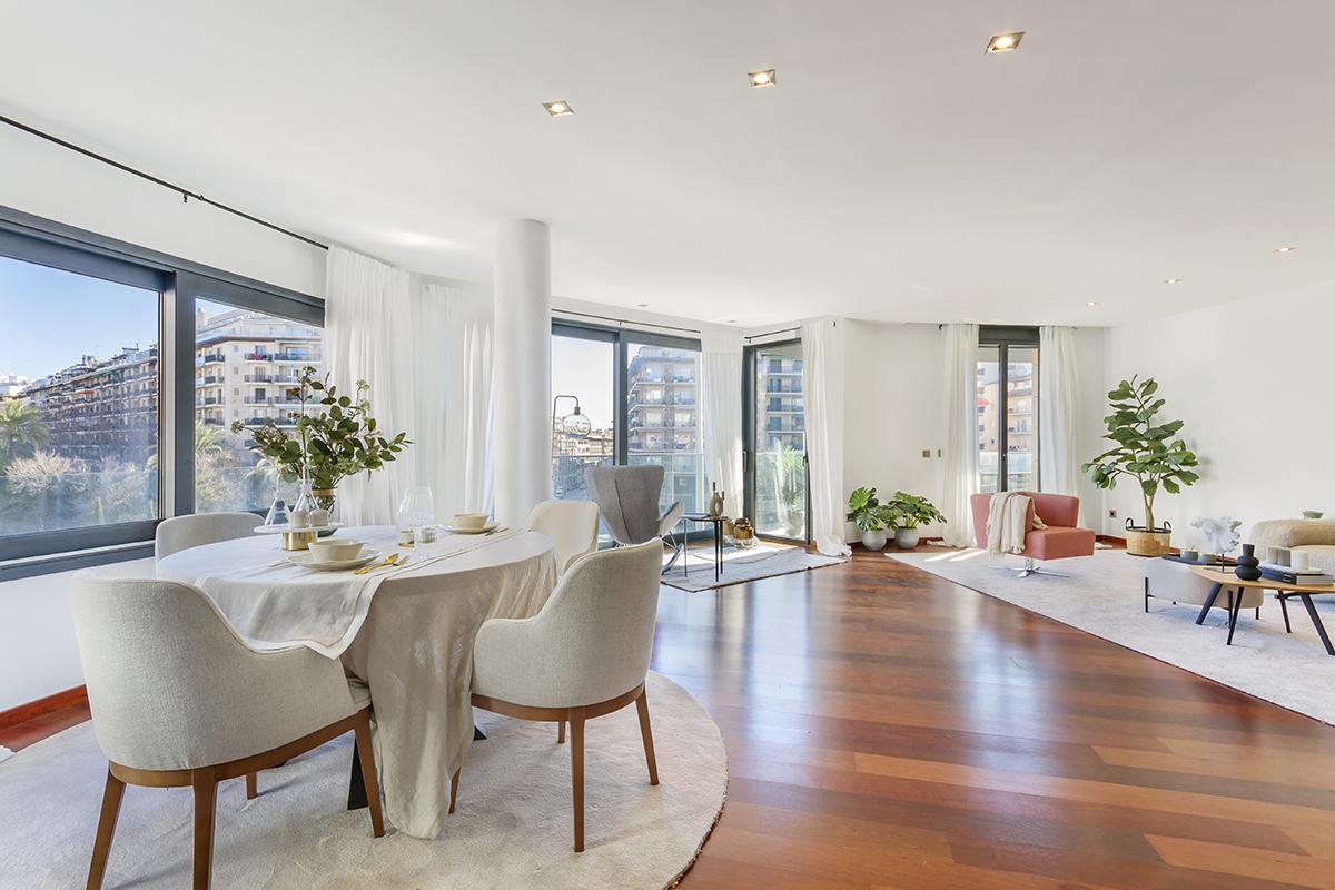 ELEGANT MODERN APARTMENT with views and close the sea in the heart of Palma. The interior comprises an entrance hall, a large living and dining room with a terrace as well as an separate fitted kitchen equipped with Bosch appliances. There is also a utility room, 3 double bedrooms and 2 bathrooms. The master bedroom has its own dressing room and an en suite bathroom with a hydro massage bath. Ref. SWOPAL10300. Enquiries 971-684000; info@balearic-properties.com