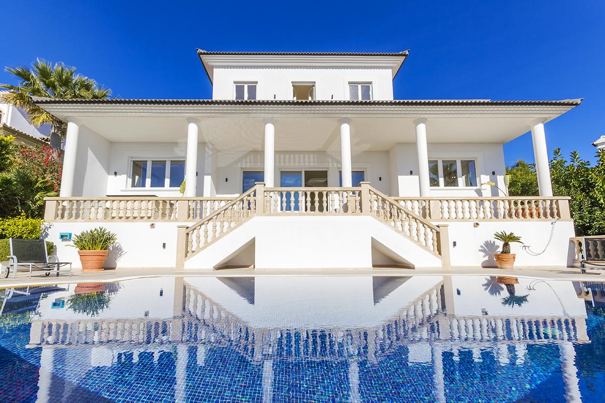 BEAUTIFULLY DESIGNED, ultra- modern villa with pool in Santa Ponsa. This impeccable new villa occupies a plot of approx. 1,219 m² and is located in a sought- after residential area, close to the golf course. The nearby beach, shops, and restaurants are just a few minutes walk away. Ref. SWONSP40616. Enquiries 971-684000; info@balearic-properties.com