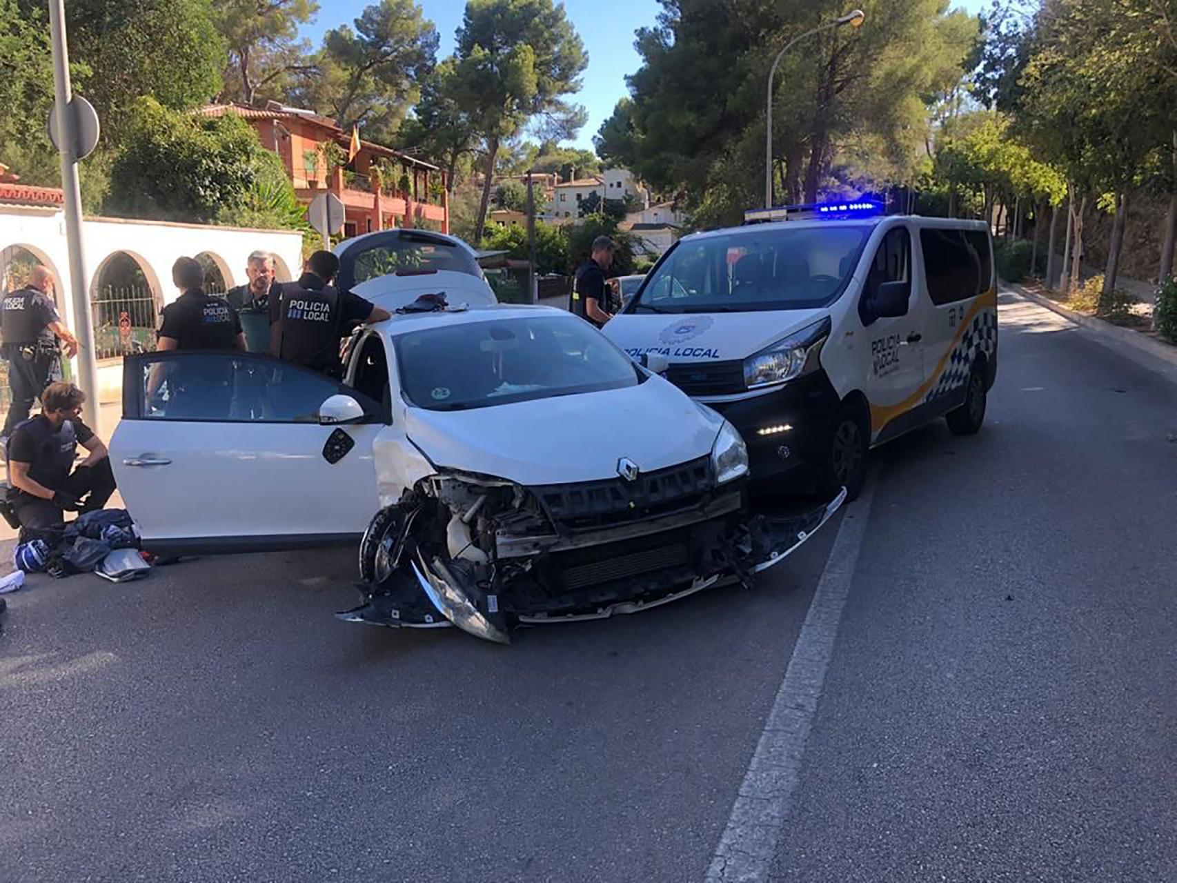 Around 5pm, police stopped the car, which was being driven in an erratic manner. This was in Santa Ponsa. However, the driver sped off and a chase ensued. In addition to damaging his own car, he hit five other vehicles before finally coming to a halt near Portals Nous, when the car collided with a police van.