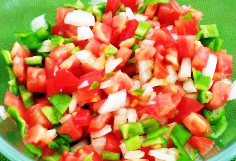 This simple salad is a delight in the summer. It costs of tomato, peppers and onions all finely cut with tuna fish being an added option. It can be prepared within minutes. Click here
