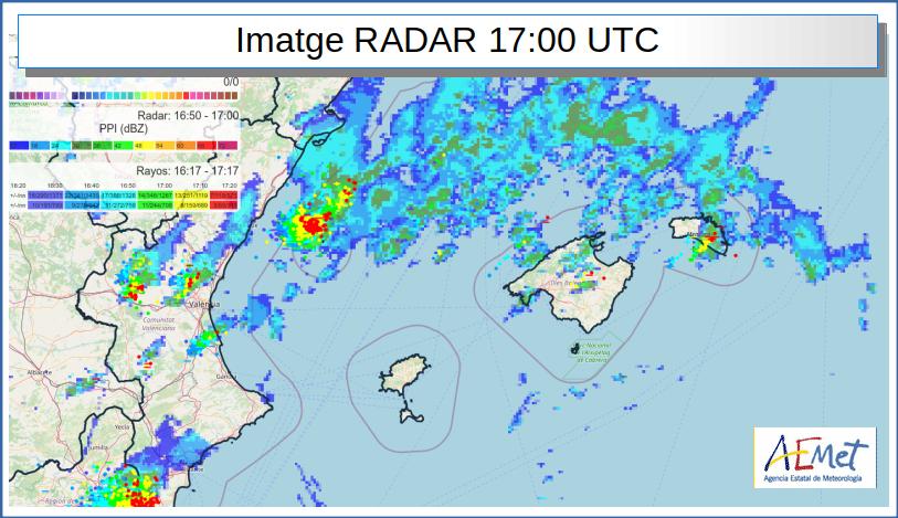 As for Tuesday, rainfall was only very light. The image with this report comes with an explanation that rain and thunderstorms were moving away from Mallorca to the northeast. But there will be more to come; hence the weather alerts.